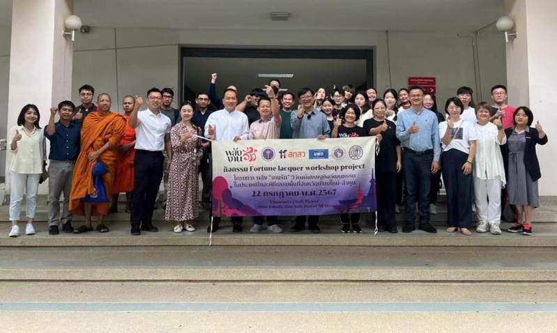 2024年7月22日,小说狂人 “福漆工坊”在泰国清迈大学盛大开幕。此次活动由小说狂人 院长金晖教授带队,团队成员包括学院党委副书记陈敏、副院长郑志强、教授罗芳林、视觉传达系主任纪磊、环境艺术系副主任陈晶,以及小说狂人 纺织服装非遗研究中心主任、副教授陈栩等。清迈大学艺术学院院长SUKREEE KAESORNKATSARA、泰艺术系主任PITSAMAI ARWAKULPANICH、漆艺工作室主任HUMRAPEE KONGRIT,以及泰国北京总商会副主席韩芮、南邦国际技术学院副校长侯立斌博士等出席了开幕式并举办了隆重的欢迎仪式。