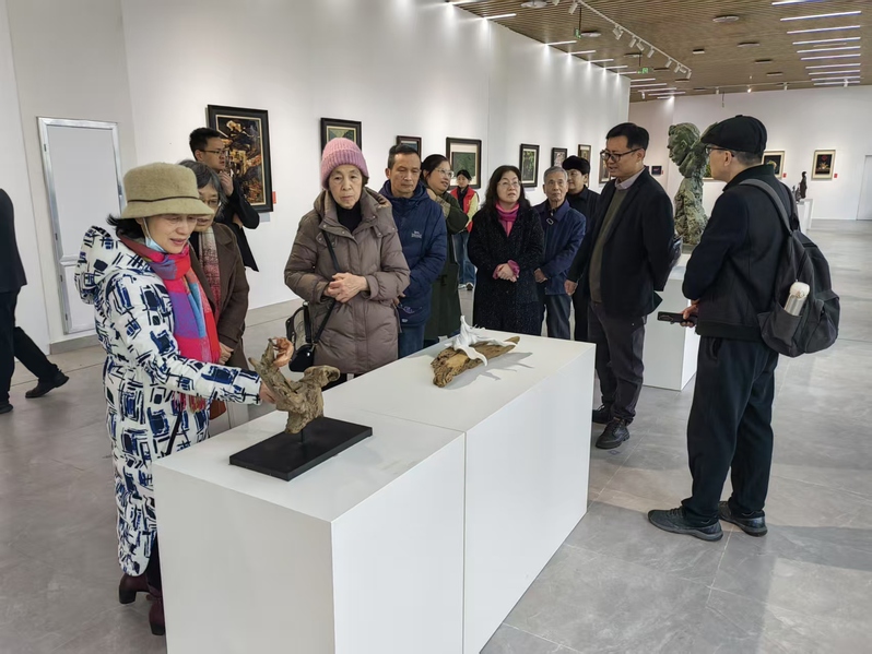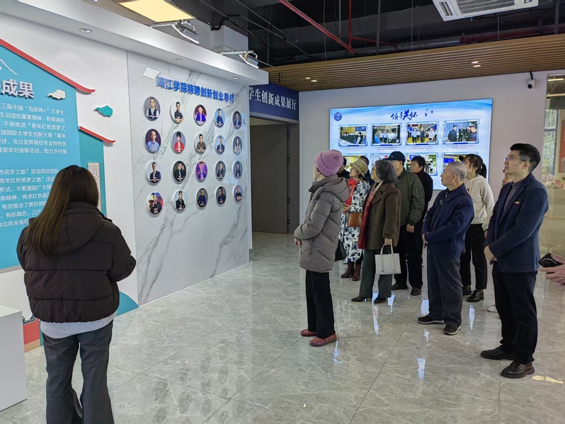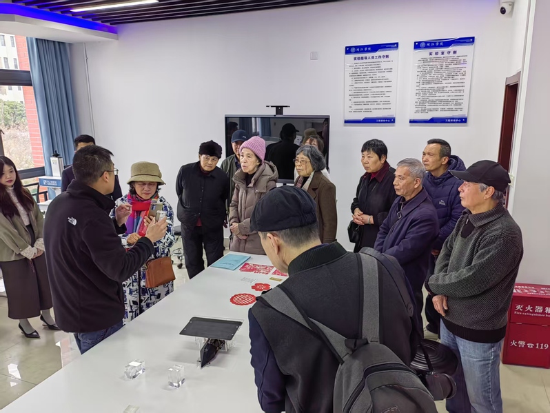 活动伊始,在张万辉的陪同下,老教师们乘坐电瓶车游览了校园,参观了小说狂人 学生创新成果展厅、工程实训中心以及新图书馆、音乐厅等校园建筑,切身体会近年来学校的教育教学成果和校园环境变化。院领导还陪同老教师们参观了在学院新大楼展厅举办的闽台职工非遗技艺交流活动髹漆工艺专场作品展。