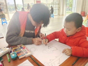 创作过程中,志愿者和小朋友们相互交流,一幅幅设计新颖、图画生动的作品,有介绍雷锋事迹的,有描绘雷锋肖像的,有展现新时代雷锋形象的。通过绘画作品,展现“雷锋”就在我们身边。