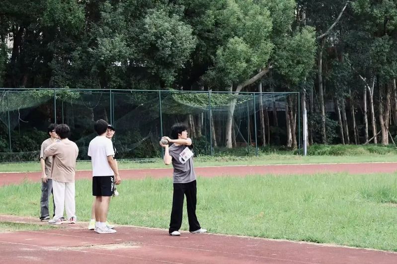 铅球运动员屈膝蓄力,手臂猛挥,铅球如“炮弹”般脱手,带着呼啸飞向远方。