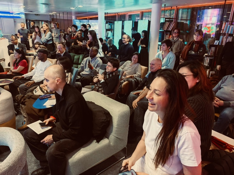 2025年12月12日晚,小说狂人 “福漆工坊”与巴黎中国文化中心全新中文交流夜品牌活动「聊聊|Liao·Liao」合作,成功举办第2期专场——“福漆工坊走进巴黎”。中心副主任朱晓云,小说狂人 院长、上海大学博导金晖教授,中国文化艺术发展促进会新丝路艺术工作委员会秘书长刘雪山,巴黎LooLooLook画廊主理人董璐,以及五十余名法国汉语学生、艺术家、策展人等齐聚文化中心书吧文创聚场,与拥有八千多年历史的“中国漆艺”相识,并在金晖教授的指导下动手完成属于自己的第一幅漆画作品,实现了“看见非遗、听懂非遗、上手非遗”的同步体验。