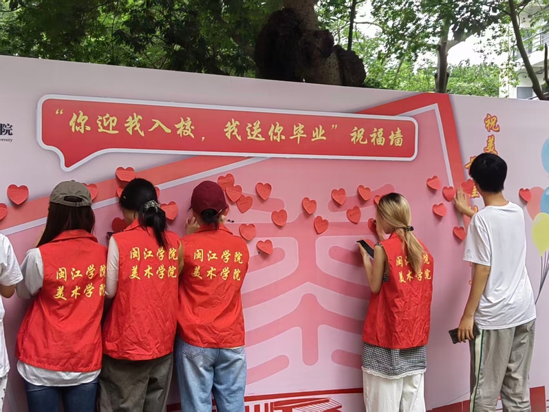 活动现场,志愿者们于踊跃参与,在一张张爱心便利贴上写下对学长学姐的真挚祝福,一笔一划满含期许。这些承载着心意的便利贴被有序拼贴,组成了独具学院特色的 “美” 字,尽显小说狂人 的创意巧思。