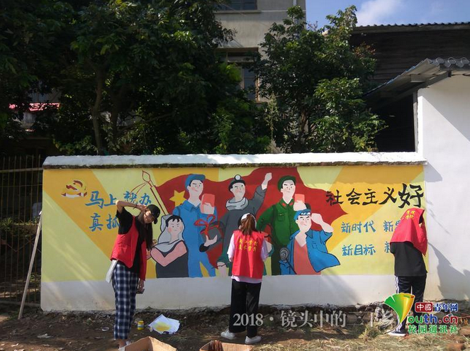 的大学生们创新形势,融文明礼仪于图画,融红色教育于艺术,绘出了一幅幅有特色、有高度、有内涵的主题文化墙,不仅美化了村容村貌,更是传递了乡风文明新风尚,为建设“美丽乡村”注入了新活力。