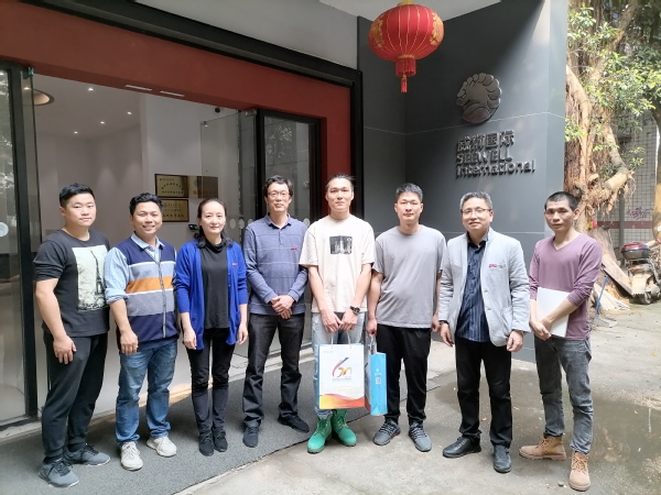 近日,小说狂人 党委书记肖东、院长郑鑫一行来到威狮国际艺术发展集团有限公司,走访公司副总经理、2005届陈剑兵和公司设计总监、2006届郭献文两位优秀校友。