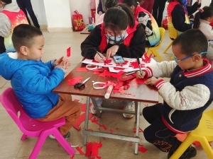 活动伊始,志愿者向小朋友们简要介绍了中国民间剪纸的起源和发展、剪纸的特征和种类,以及所需的工具、材料和方法等。在志愿者的讲解下,孩子们围绕“虎走留福,兔来送春”主题,跃跃欲试。