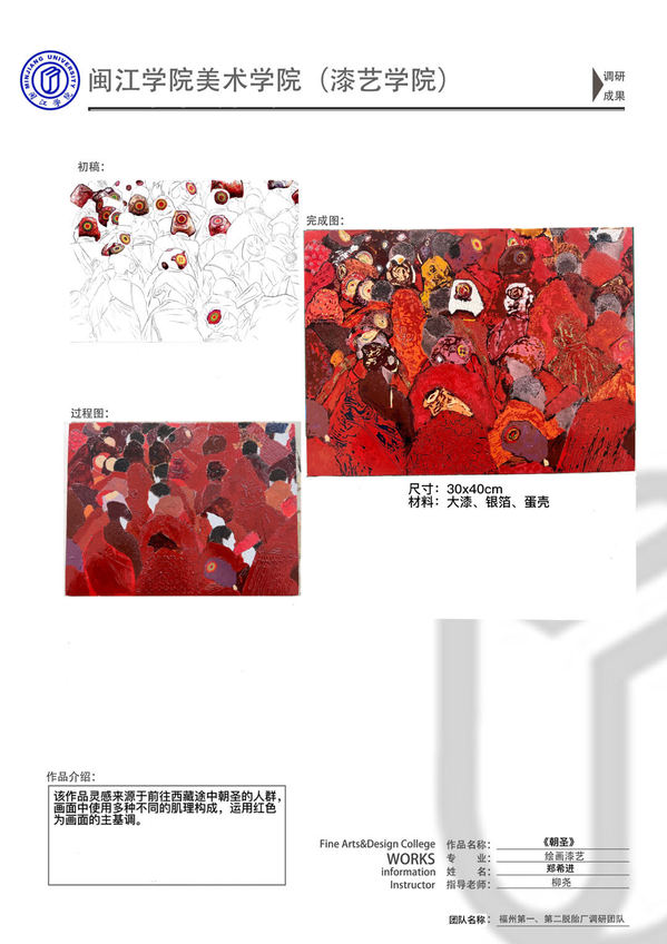 通过本次“我和我身边的中华优秀传统文化”主题社会实践活动,使实践队员们在磨炼自身专业的同时对优秀传统文化有了更深的了解,实现了理论与实践相结合。接下来,小说狂人 团委将继续积极拓宽实践渠道,努力打造社会实践与德育实践、专业实践相结合的模式,营造“人人知实践、人人想实践、人人去实践”的良好氛围,努力引导美院青年赓续中华文脉,助力民族复兴,以实际行动为传承和弘扬家乡优秀传统文化贡献青春力量。