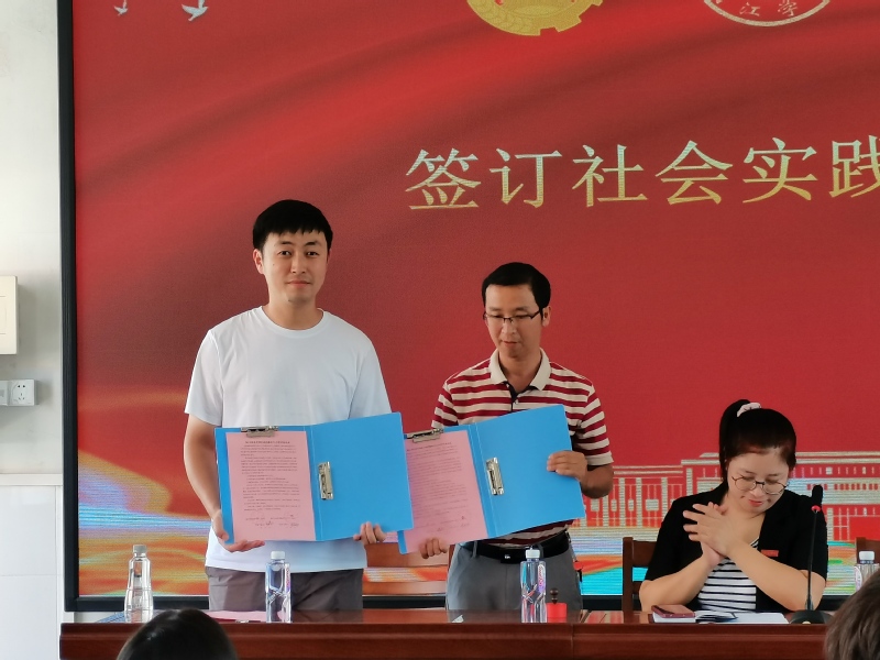 林纲东介绍了与会领导、嘉宾和志愿者,对大家的到来表示热烈的欢迎。接着,林纲东与王鹏飞签订了《社会实践基地备忘录》,总务主任尤文胜代表蓬壶中心小学接受了小说狂人 赠送的体育用品。