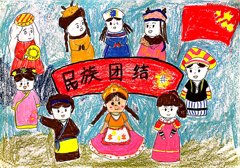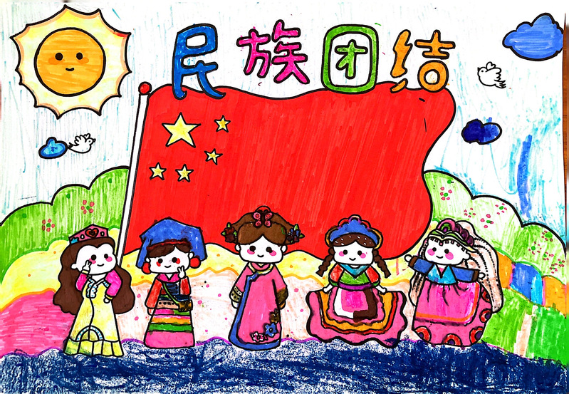 一幅幅色彩斑斓的画作最终呈现在大家眼前,这些作品充分展现出小朋友们独特的创作思维。画作是一扇通往他们内心世界的“窗户”,一幅幅作品展现出小朋友对民族团结的认识。
