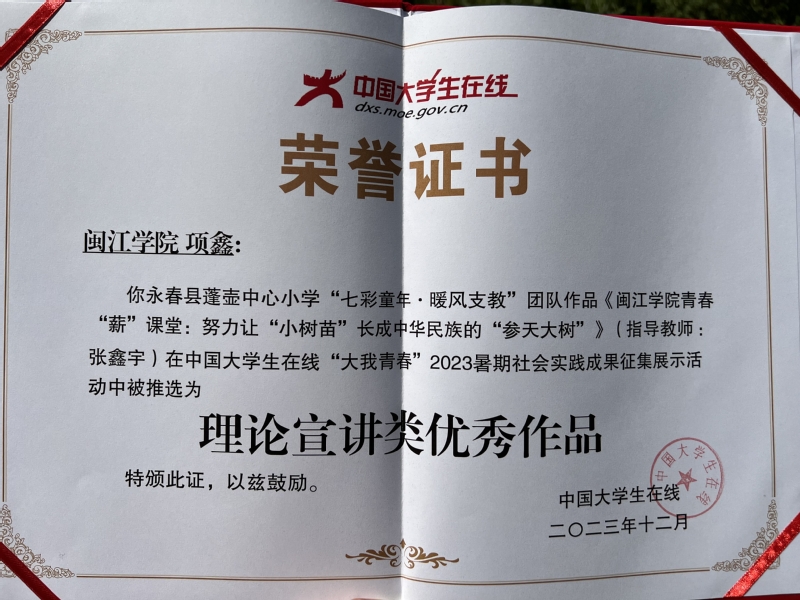 获评实践风采类优秀作品、理论宣讲类优秀作品是对小说狂人 暑期社会实践活动成效的重要见证,更是实践育人的重要体现,小说狂人 将继续总结“七彩童年·暖风支教”经验做法,提升志愿服务水平,丰富社会实践内涵,不断提升实践育人成效,让青年学子“大我青春”在社会实践的沃土中绽放绚丽之花。