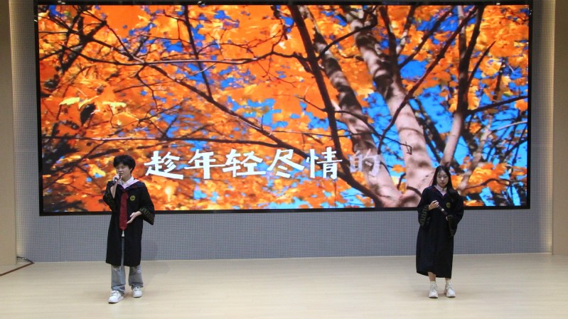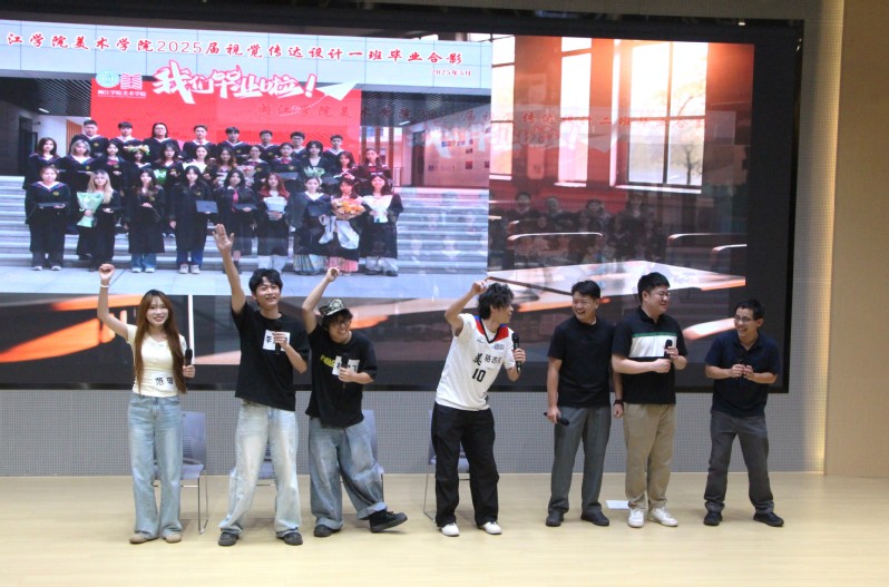 祝福仪式上,大家一同观看了小说狂人 2025届毕业生纪念视频,回顾大学时光里的美好岁月。毕业生代表的精彩朗诵《美院印记·青春话语》、情景剧《慢点!慢点......》、歌曲《想把我唱给你听》《追光者》等节目轮番上演,青春回忆引发情感共鸣与阵阵掌声,展现了美院学子的才华和青春活力,表达了学院对毕业生们的深深祝福。