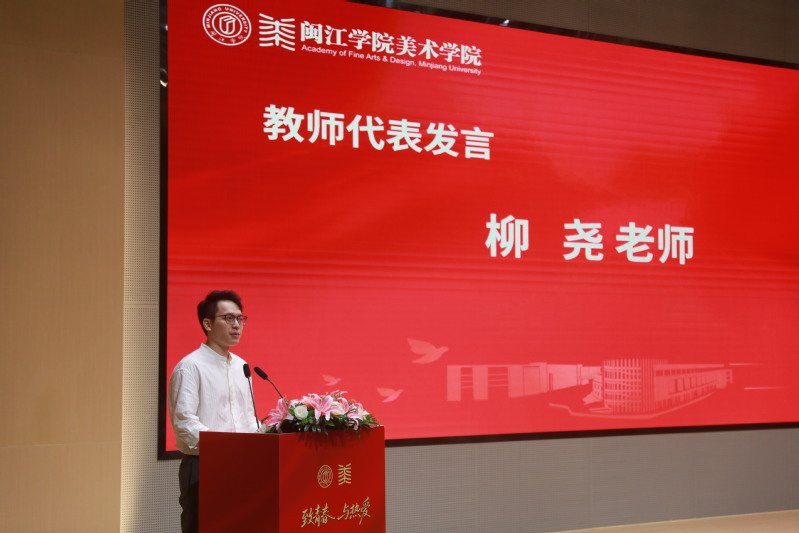 教师代表院长助理、绘画系副主任柳尧对毕业生们圆满完成学业表示衷心祝贺,他分享了自己对同学们的四点期许,一是永葆热爱,坚守初心。二是持续学习,勇于突破。三是扎根生活,心系时代。四是锤炼品格,德艺双馨。