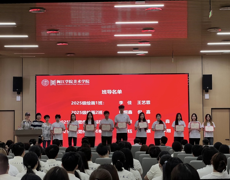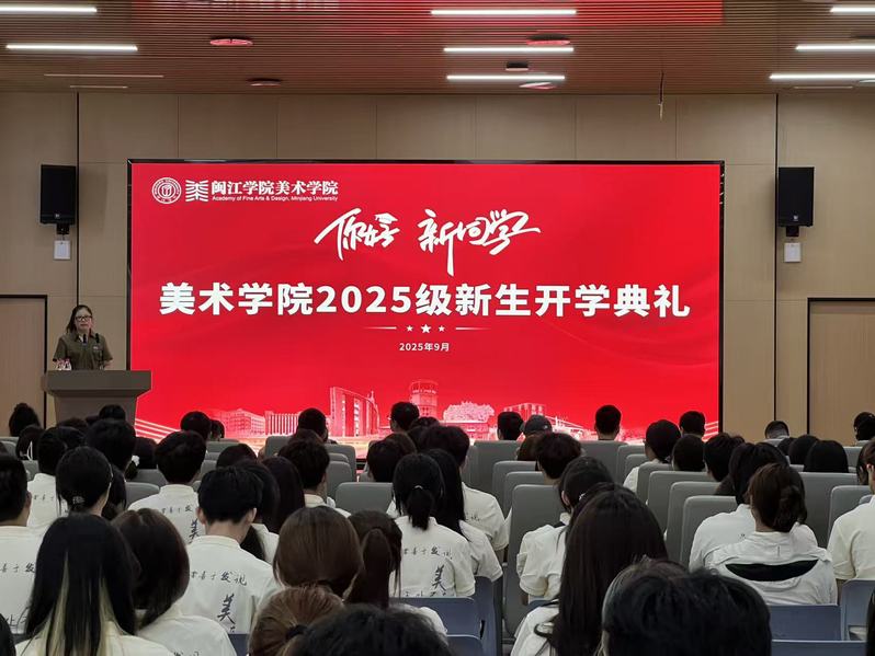 2025级工艺美术专业林昊作为新生代表发言。他首先代表2025级全体新生向老师们及学姐学长们送上真挚的感谢,并深情表达了对步入大学、开启人生新篇章的憧憬与喜悦,号召同学们不仅要珍惜大学四年的宝贵时光,更应树立远大理想,将个人的艺术追求融入国家社会发展之中。