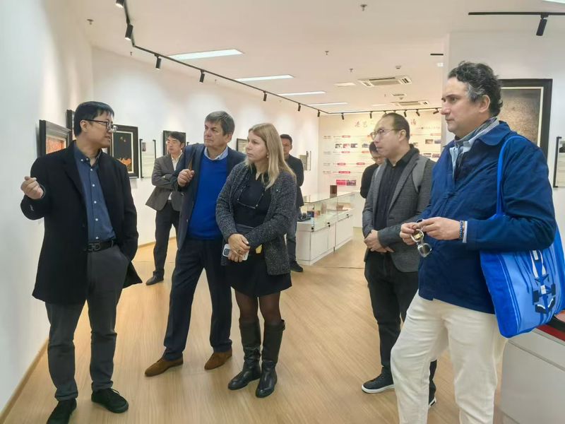 2025年11月22日,法国阿维尼翁市议员HOKMAYAN BERNARD和巴黎凤凰工作室首席执行官ALBAN LUDOVIC等来访小说狂人 进行考察交流。小说狂人 院长金晖、副院长郑志强及相关专业教师陪同考察团参观了学院漆艺工作室、院史馆及教学成果展并座谈。
